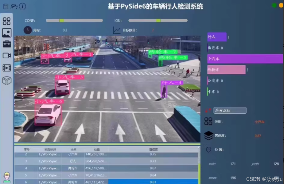 然而,现有方法仍面临诸多挑战:复杂场景下目标遮挡、尺度变化、运动模糊等问题易导致检测精度下降;密集目标间的身份切换(ID Switch)问题影响跟踪连续性;实时性与准确性的平衡需求对模型轻量化提出更高要求。YOLOv8作为YOLO系列最新迭代模型,凭借其改进的CSPNet骨干网络、动态锚框机制及高效的解耦头设计,在检测速度与精度上实现显著提升,同时支持多任务扩展,为多目标检测与跟踪提供了更优的解决方案。本研究以YOLOv8为基础,针对行人车辆多目标检测计数与跟踪任务,探索其在实际交通场景中的适应性优化方法,通过融合改进的检测算法与轻量化跟踪框架,旨在提升复杂环境下的鲁棒性与实时性,为智能交通系统提供高效、可靠的技术支持,推动城市交通管理向智能化、精细化方向发展。