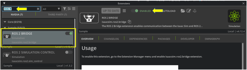 ${ISAACSIM_PATH}/isaac-sim.sh在 IsaacSim 模拟器中启动 ROS2 Bridge 功能开启 IsaacSim 模拟器之后,点击上方 Windows -> Extension(最下方),会出现以下窗口: