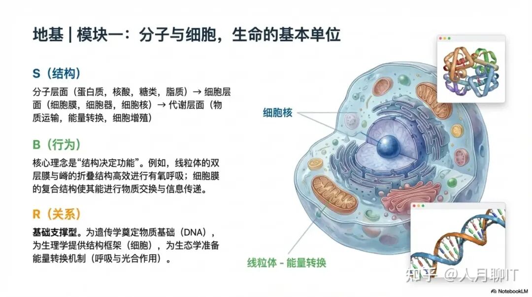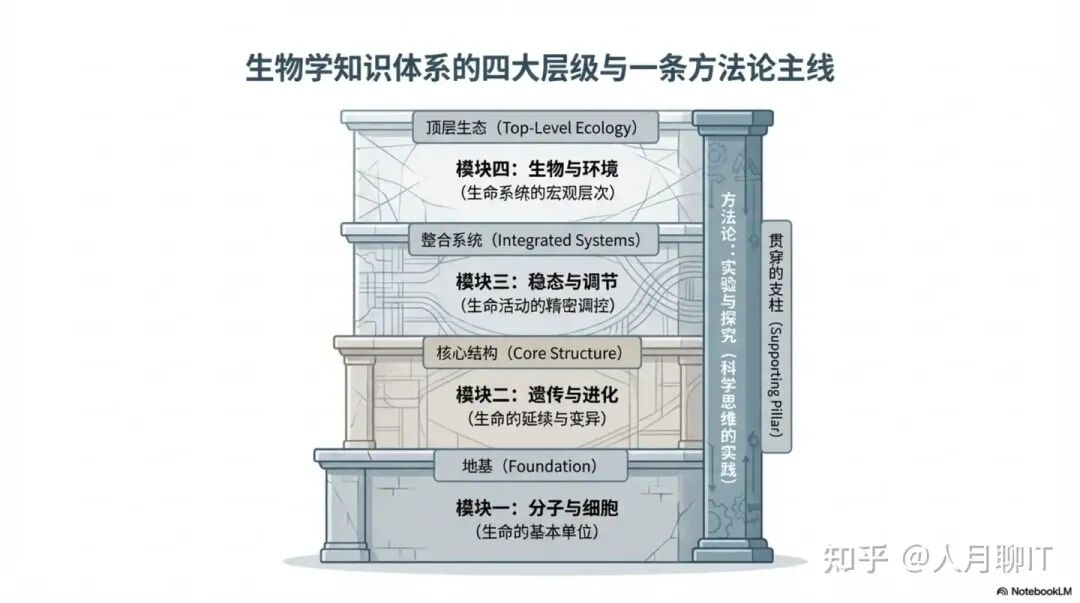 作为生物学大厦的基石,”分子与细胞”模块构建了对生命最基本的认知。该模块在结构上分为三个层次: