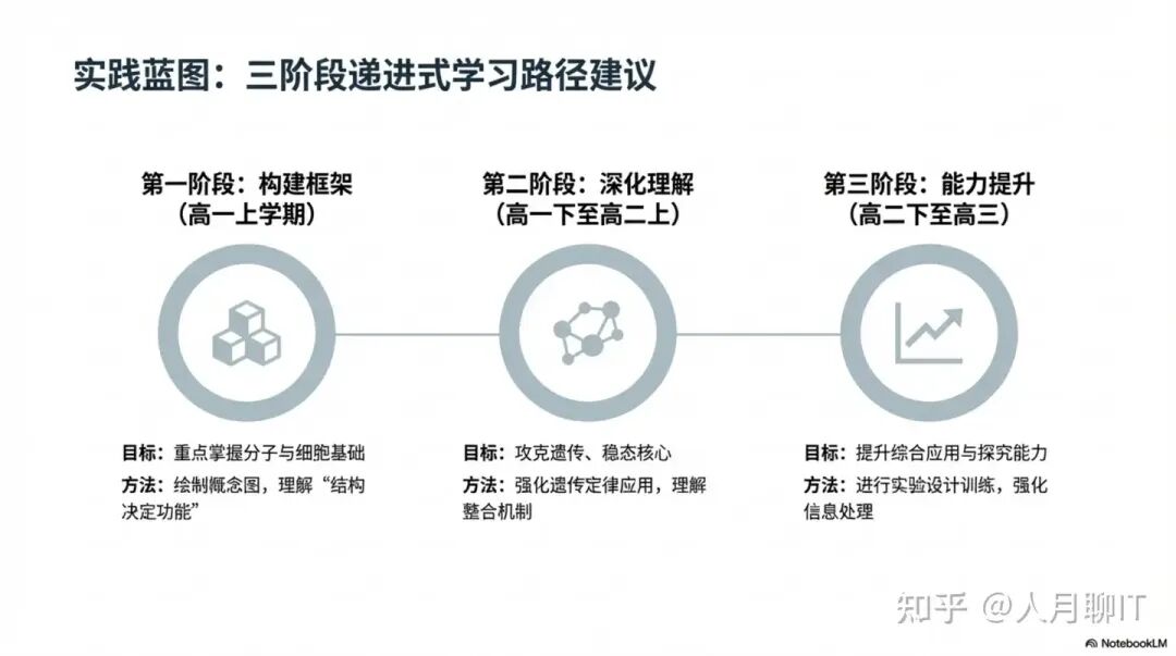 第二阶段:深化理解(高一下学期至高二上学期) 重点学习遗传与进化、稳态与调节模块的核心内容。建议: