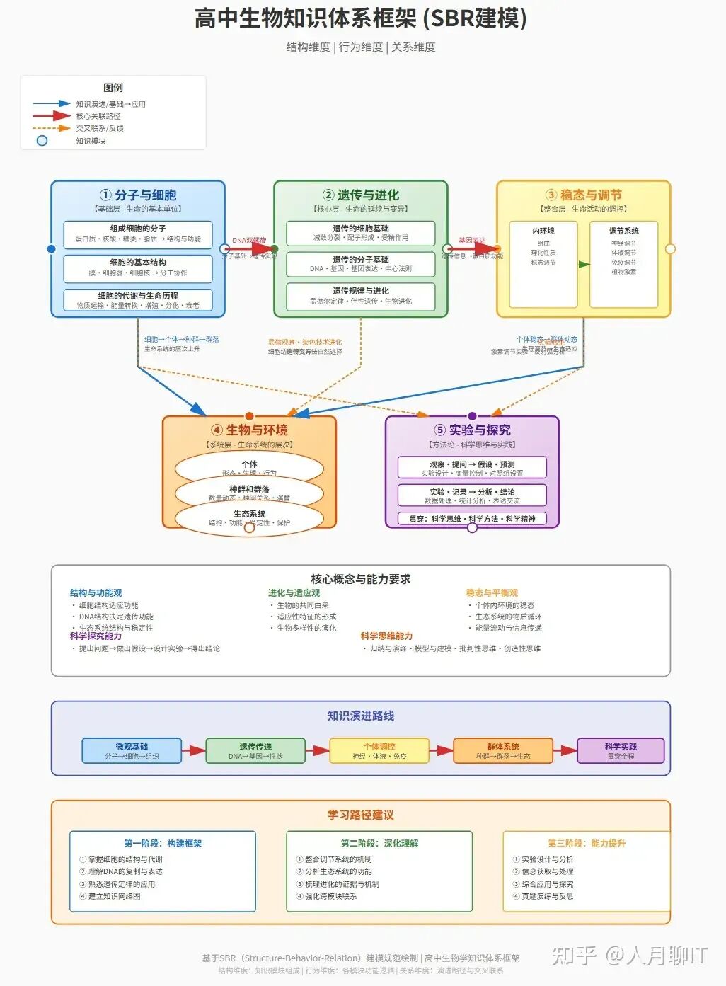 高中生物知识体系是一个逻辑严密、层次分明的有机整体。通过SBR(结构-行为-关系)建模框架,我们能够清晰地认识到: