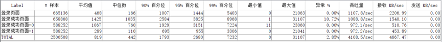 •登录成功页面的最大响应时间为31128毫秒(31.1秒),这表明在某些情况下,响应时间可能非常慢,可能是由于系统瓶颈或后端服务器的性能问题。需要深入调查导致响应时间延迟的具体原因。