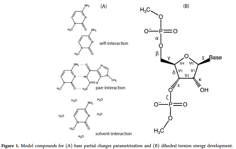 过去的参数化工作主要集中于改善扭转能项,这些项对核酸构象具有决定性影响。但许多方法依赖未经充分论证的假设,例如忽略二面角之间的耦合、采用一维扫描而非整体能量面建模,或为避免内部氢键形成而人为设置非扫描角的值。这些简化处理限制了力场对结构多样性的准确再现,尤其在面对化学修饰核酸时,实验数据的稀缺进一步加剧了参数化困难。因此,亟需一种系统性、通用性的建模方法以应对这些挑战。