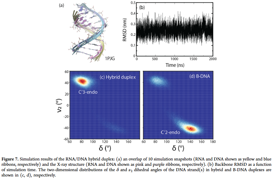 分子动力学(MD)模拟因其高时空分辨率,成为研究核酸性质的重要工具。然而,模拟精度极度依赖于力场的质量和构象采样效率。尽管第一代核酸力场自20世纪80年代初问世以来已历经多次优化,仍难以全面准确地描述所有核酸构象,特别是在RNA/DNA杂交双链方面的建模能力仍存在局限。