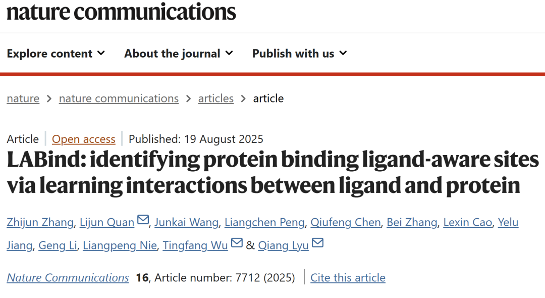 Zhang, Z., Quan, L., Wang, J. et al. LABind: identifying protein binding ligand-aware sites via learning interactions between ligand and protein. Nat Commun 16, 7712 (2025).