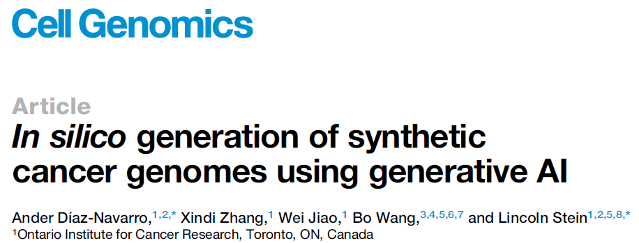 Dı ́az-Navarro et al., In silico generation of synthetic cancer genomes using generative AI, Cell Genomics (2025).