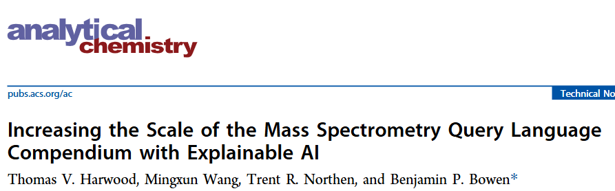 Harwood, Thomas V., Mingxun Wang, Trent R. Northen, and Benjamin P. Bowen. "Increasing the Scale of the Mass Spectrometry Query Language Compendium with Explainable AI." Analytical Chemistry (2025).