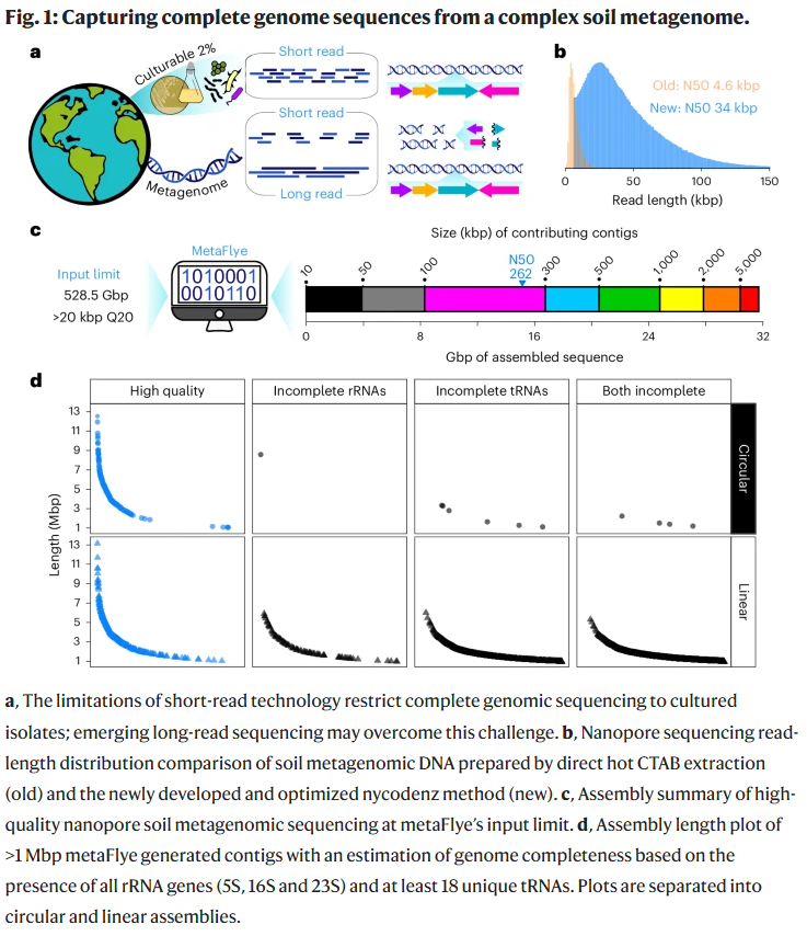 短读长测序(如 Illumina)推动了细菌全基因组测序的普及,但大多数细菌仍无法在实验室培养,限制了其基因多样性的直接研究。短读长宏基因组分析能够揭示部分多样性,但因装配片段短,难以复原复杂群落中完整的基因组序列。土壤微生物群落尤其复杂,不仅多样性极高,而且 DNA 提取常伴随杂质,使高质量装配更具挑战。