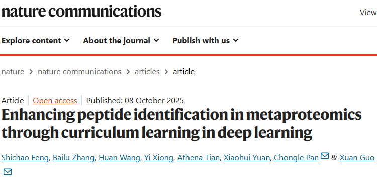 Feng, S., Zhang, B., Wang, H. et al. Enhancing peptide identification in metaproteomics through curriculum learning in deep learning. Nat Commun 16, 8934 (2025).