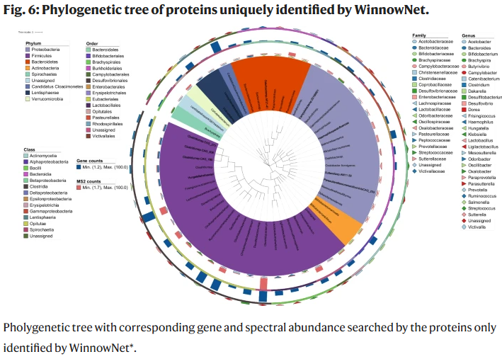 研究人员对仅被 WinnowNet 识别的人体肠道蛋白进行注释分析,发现共计 1015 个独特蛋白,来自 50 种微生物。