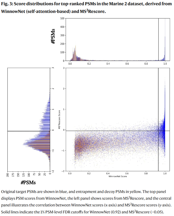 这些结果表明 WinnowNet 更好地捕获了实验谱与理论谱之间的匹配规律,从而显著增强识别准确性。