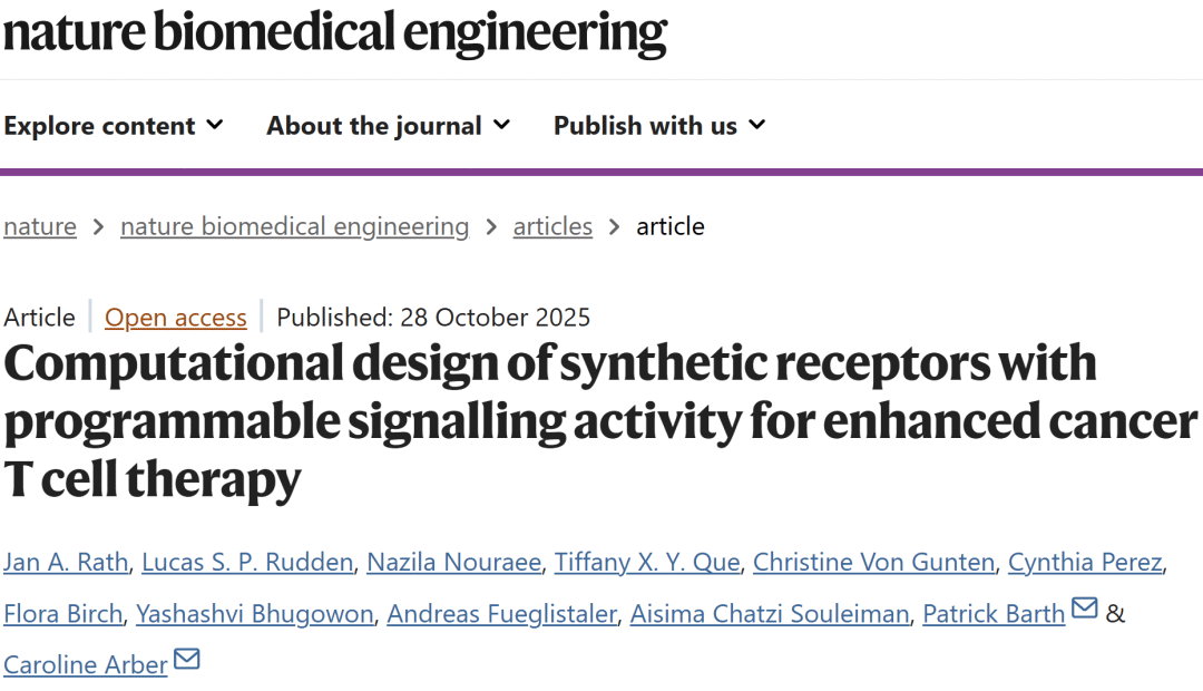 Rath, J.A., Rudden, L.S.P., Nouraee, N. et al. Computational design of synthetic receptors with programmable signalling activity for enhanced cancer T cell therapy. Nat. Biomed. Eng (2025).