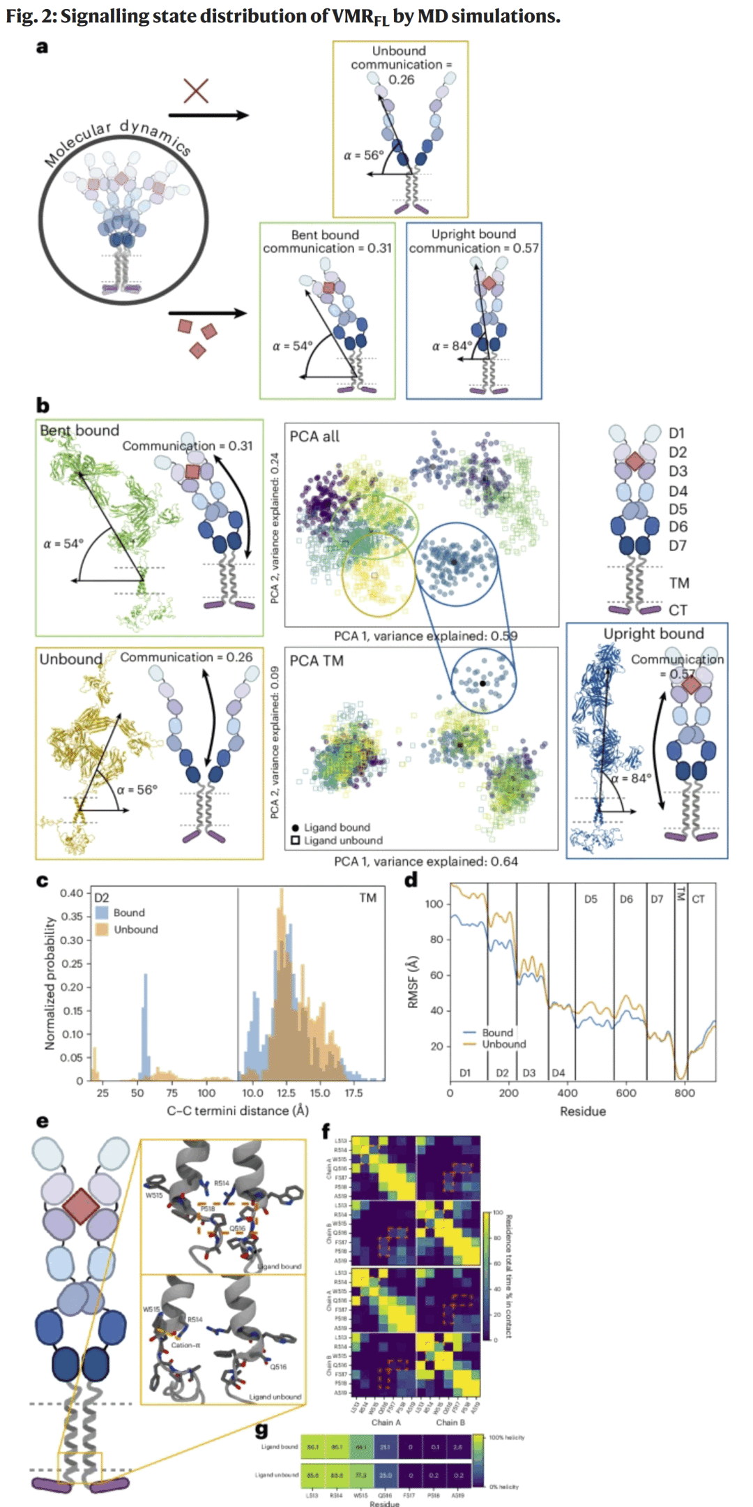 分子动力学模拟表明,VEGF结合后T-SenSER的跨膜结构域发生几何旋转,使胞内c-MPL区域形成稳定的二聚体构象,促进信号传导。