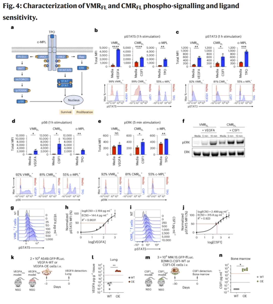 研究人员通过磷酸化蛋白组分析发现,T-SenSER激活后可显著增强STAT5、STAT3、S6与ERK磷酸化。