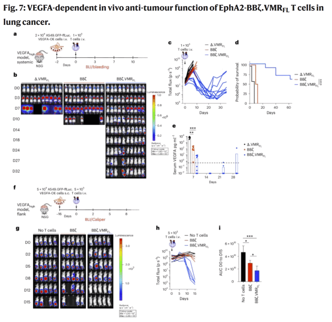 图5. VEGFA-T-SenSER增强EphA2-CAR-T细胞在肺癌模型中的抗肿瘤效应