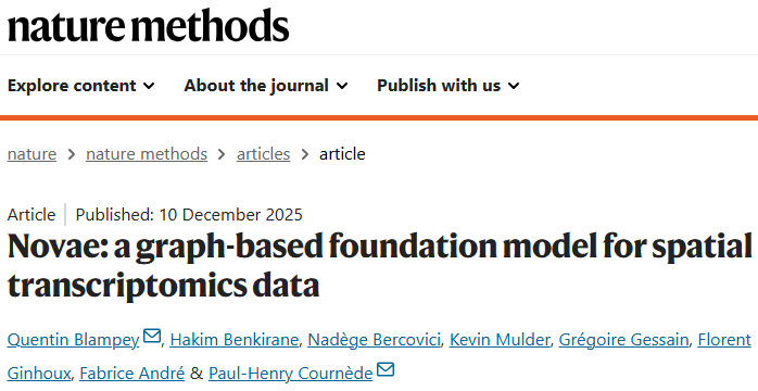 Blampey, Q., Benkirane, H., Bercovici, N. et al. Novae: a graph-based foundation model for spatial transcriptomics data. Nat Methods 22, 2539–2550 (2025).