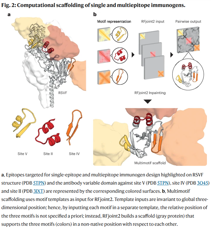 天然蛋白通常在单一结构域中承载多个功能位点,而传统的从头蛋白设计方法多只能精准呈递单一功能基序。研究人员提出了一种基于深度学习的蛋白设计策略,成功在单一、小尺寸结构域中同时精准支架化三个互不重叠的蛋白表位。以呼吸道合胞病毒融合蛋白的三个中和表位为例,研究人员设计的蛋白不仅在结构上高度复现天然表位构象,还在体内实验中诱导出更广谱、更有效的免疫应答。该研究展示了生成式深度学习在解决复杂多表位蛋白设计问题上的强大能力。