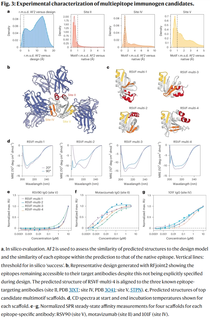 研究人员采用基于深度学习的蛋白生成框架,将三个表位分别作为独立“模板”输入模型,而不预先限定它们之间的空间取向。模型在生成整体蛋白骨架的同时,自主选择三者的相对排列方式,并构建能够稳定支撑这些表位的全新折叠结构。随后,研究人员结合序列设计模型与高精度结构预测,对候选蛋白进行筛选,并通过实验手段验证其折叠稳定性、表位可及性以及抗体结合能力。