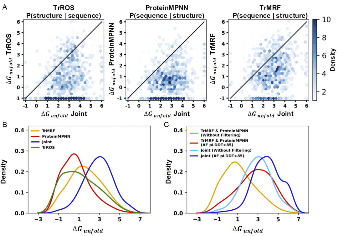 综合来看,联合优化序列与构象景观,为稳定从头蛋白设计提供了一种更接近物理真实过程的建模方式。该策略不仅在生成阶段提升了稳定性,也为后续的稳定性评估与模型比较提供了更可靠的基准。