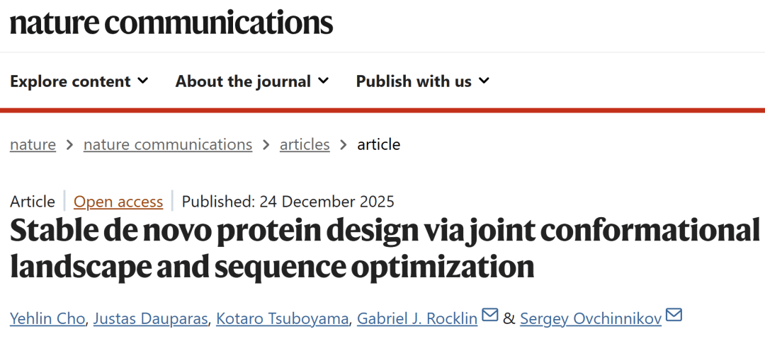 Cho, Y., Dauparas, J., Tsuboyama, K. et al. Stable de novo protein design via joint conformational landscape and sequence optimization. Nat Commun (2025).