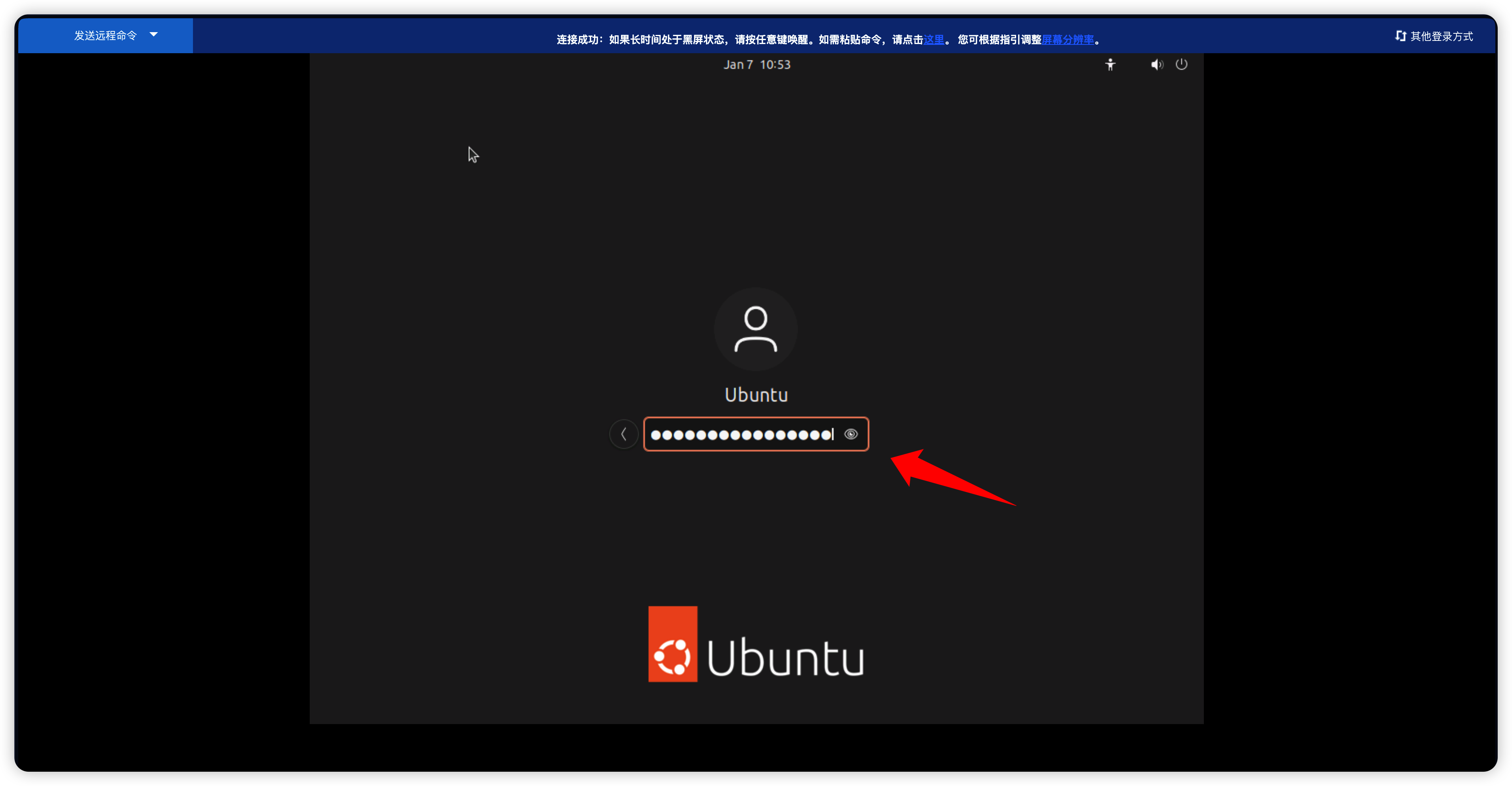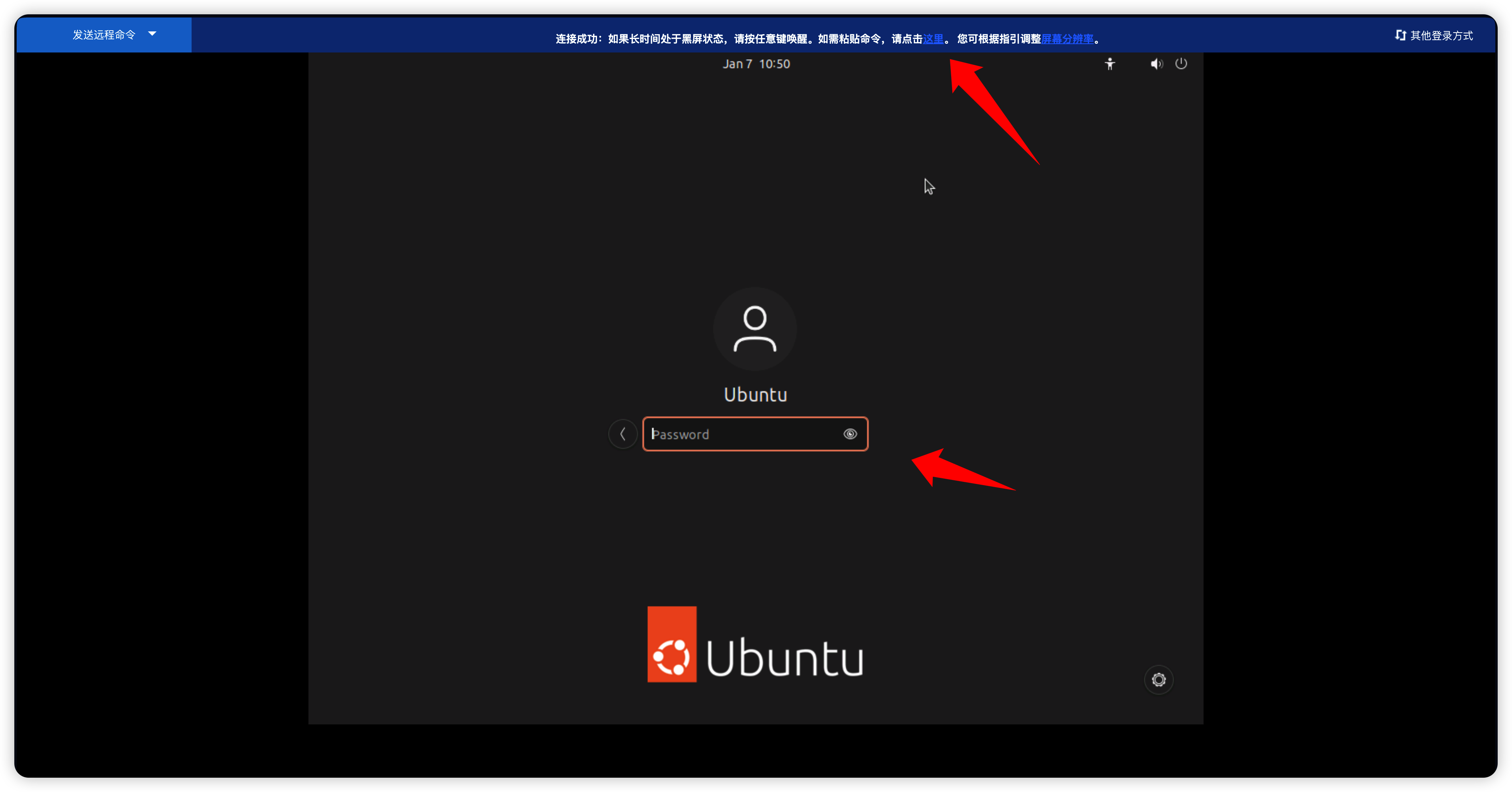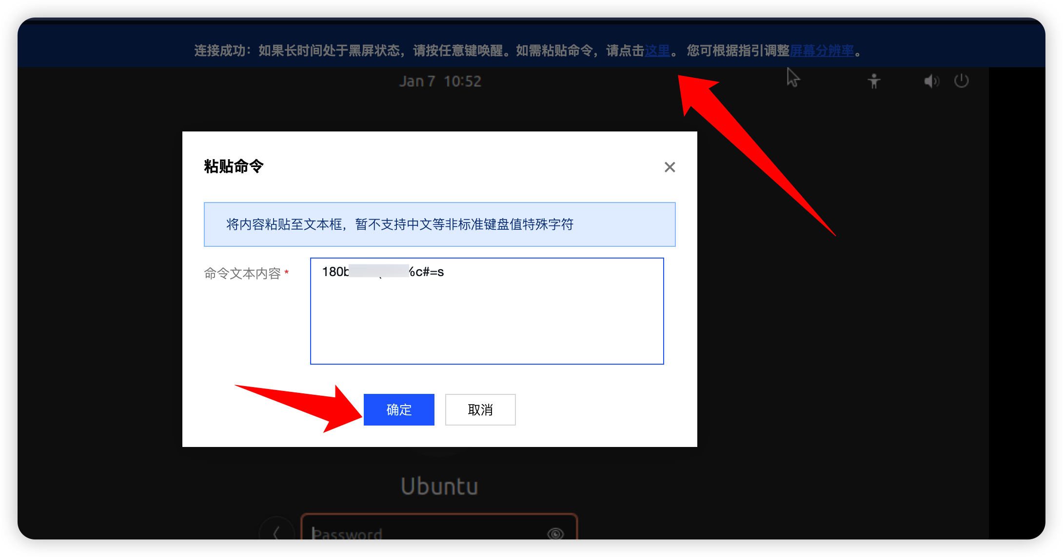 复制后输入到VNC页面。