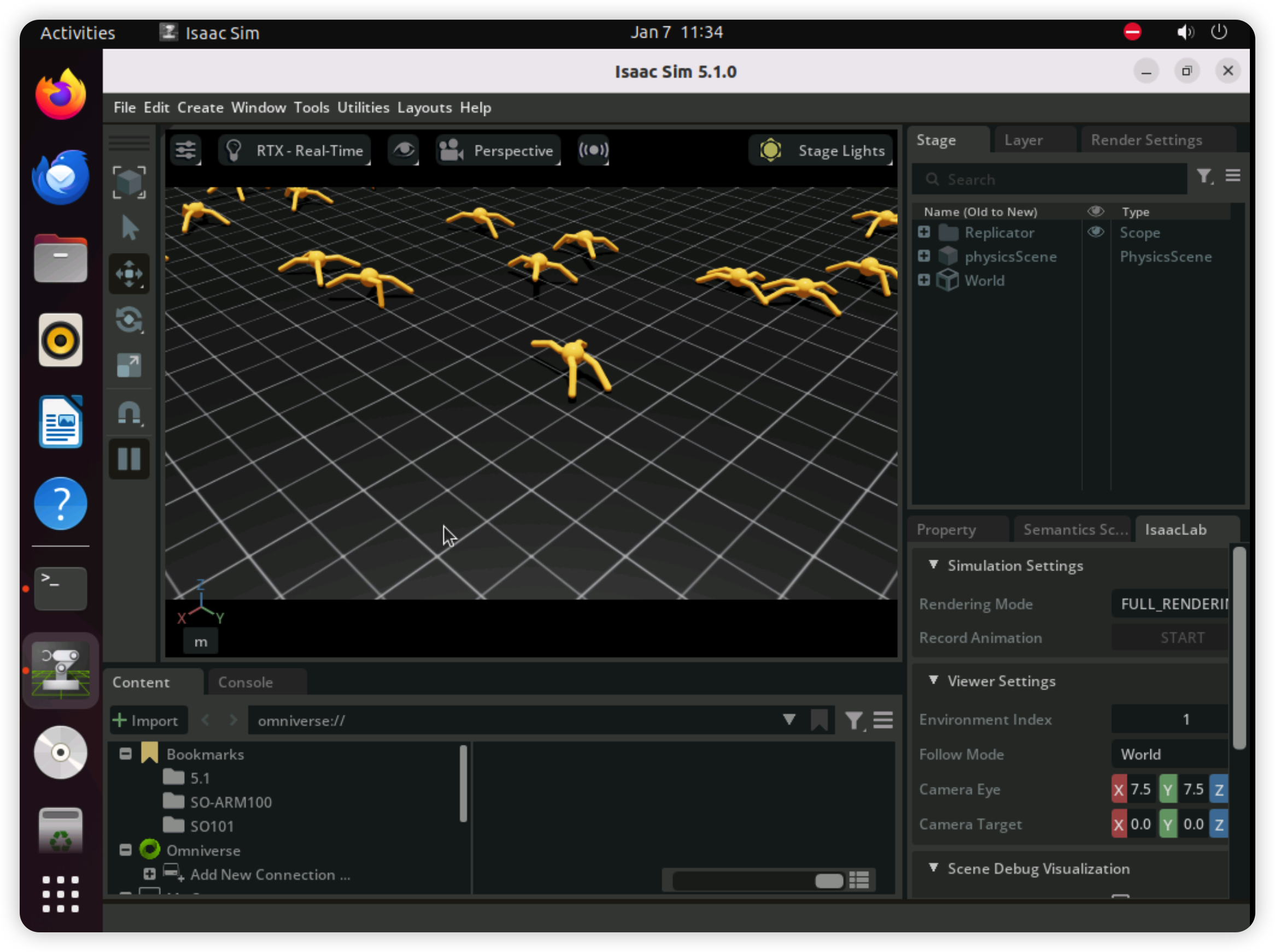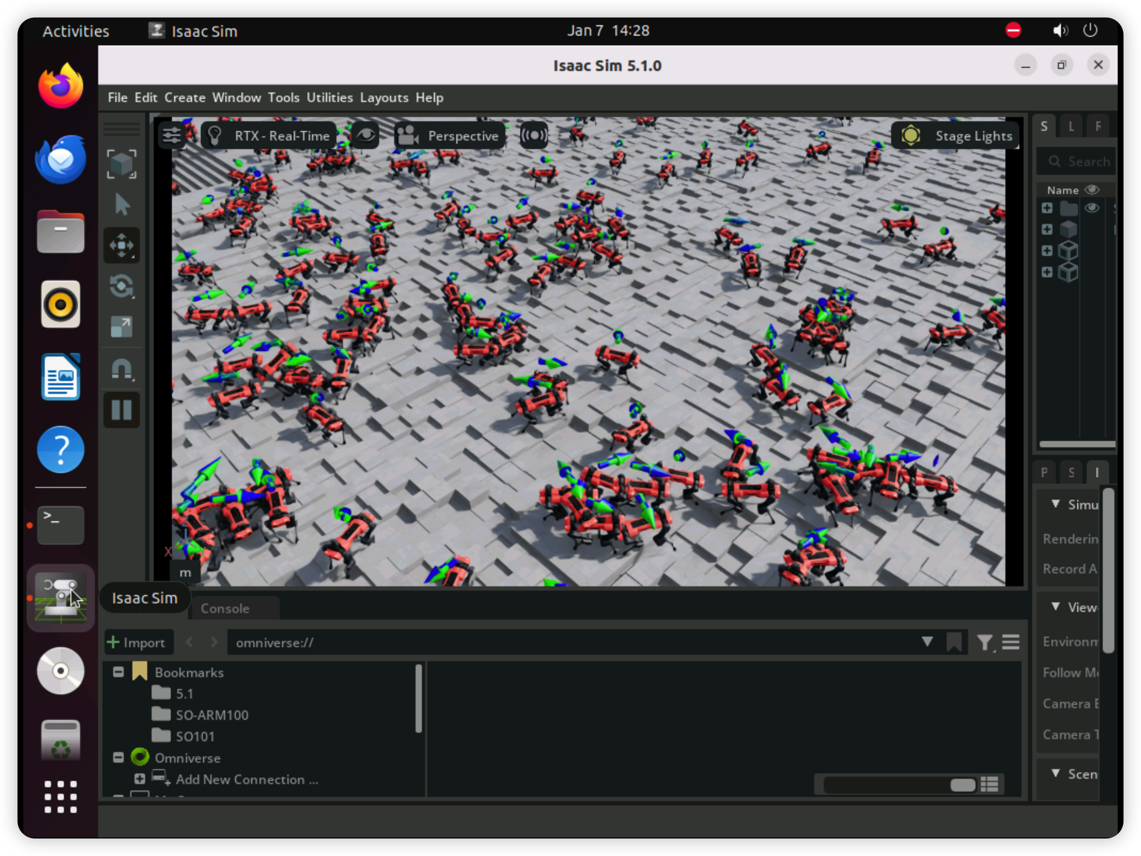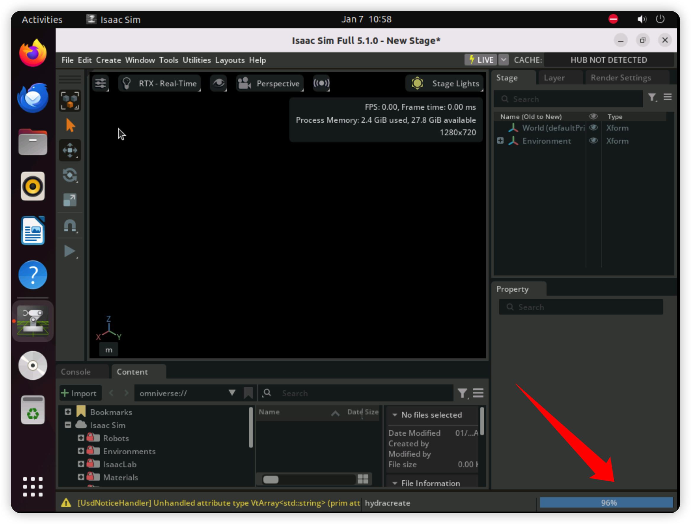 双击桌面的“Isaac Sim 5.1.0”图标,启动Sim仿真平台。第一次启动一般需要2到4分钟左右。显示下述页面等待即可。