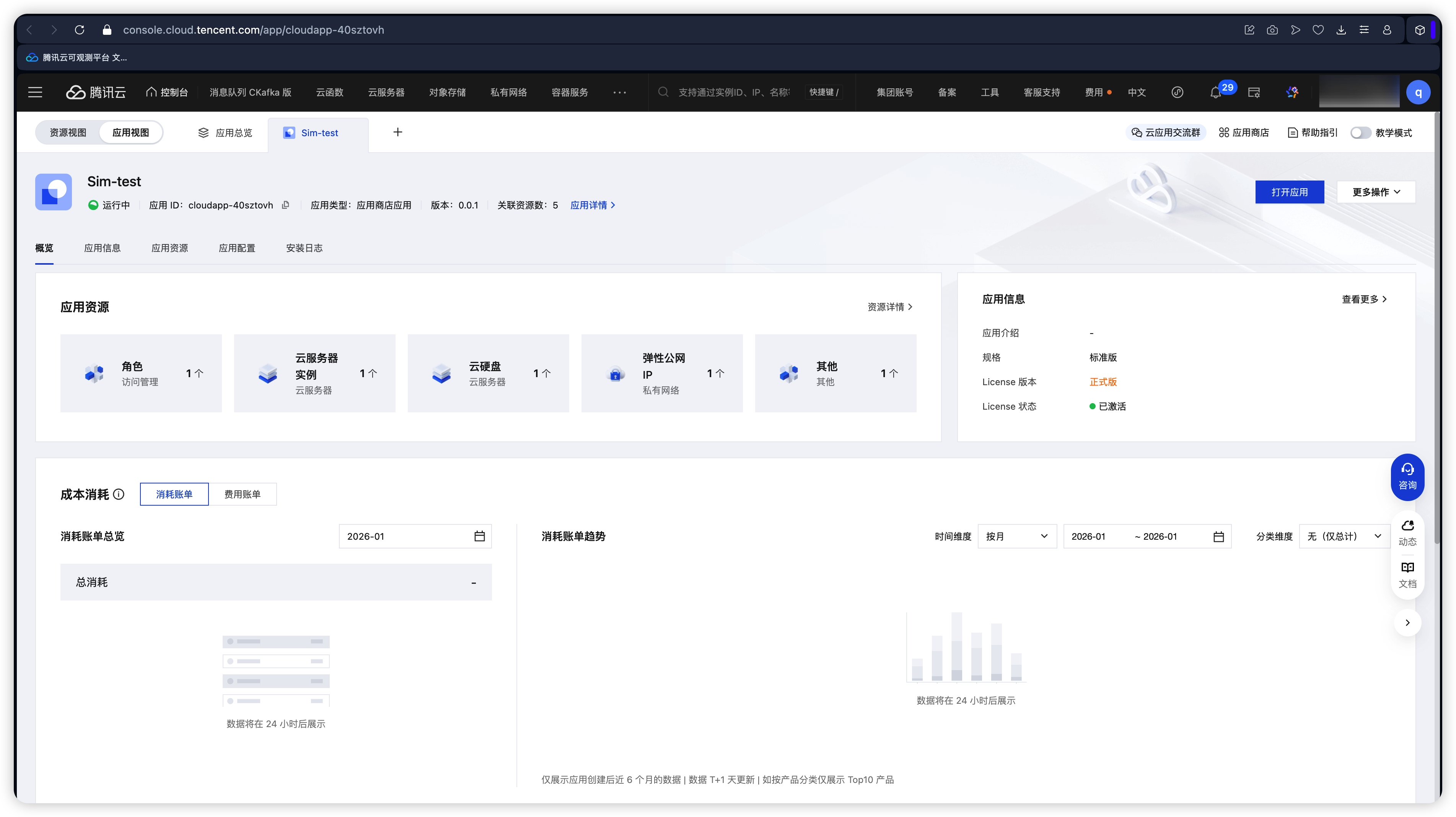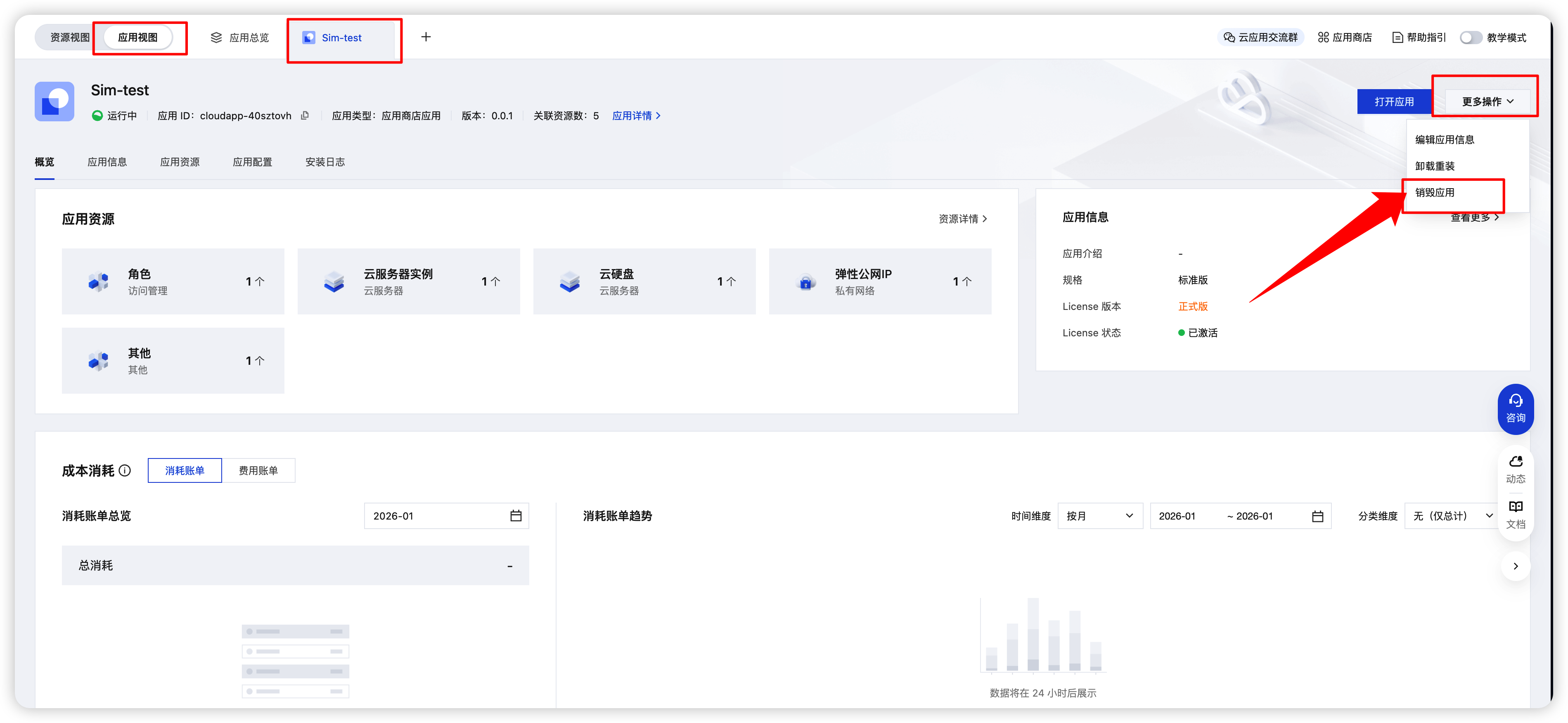 完成资源创建后,调整到应用视图页面。