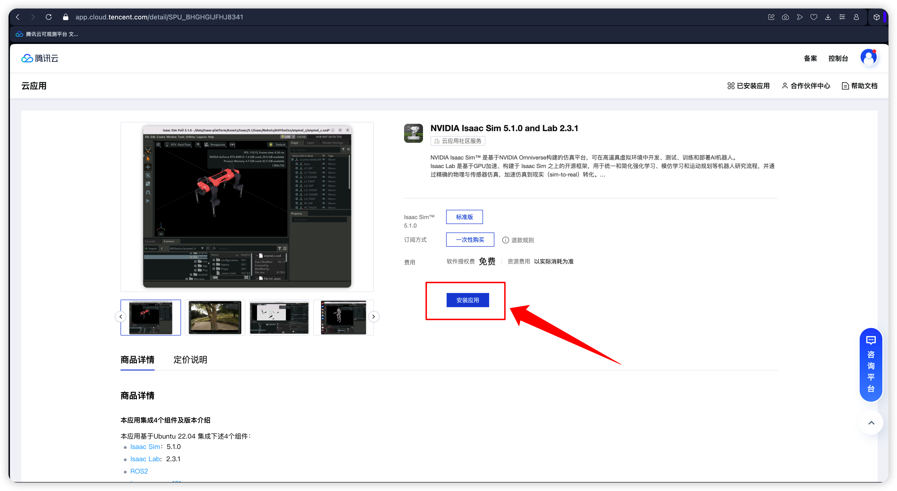 直接访问应用详情页面,NVIDIA Isaac Sim 5.1.0 and Lab 2.3.1