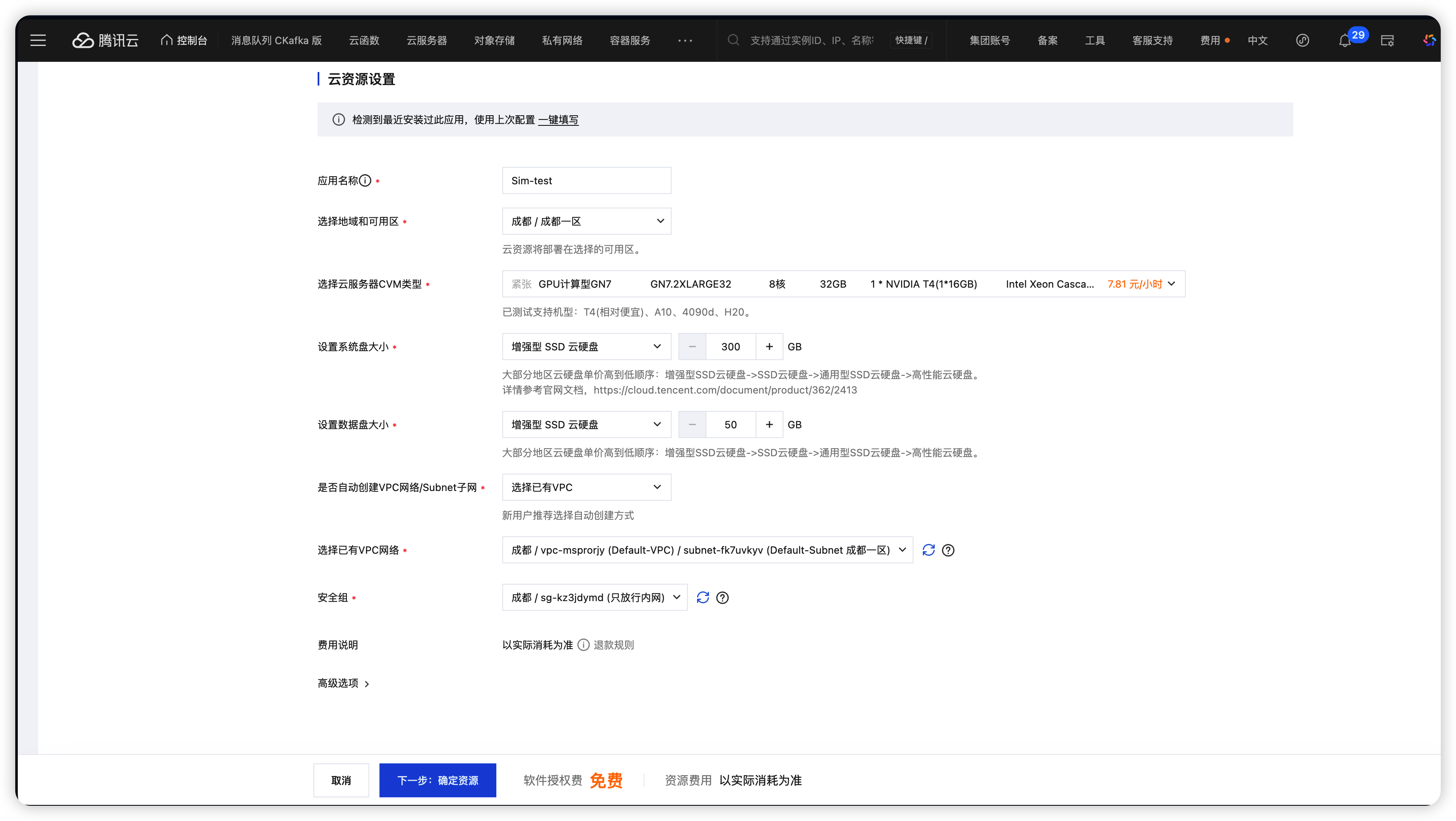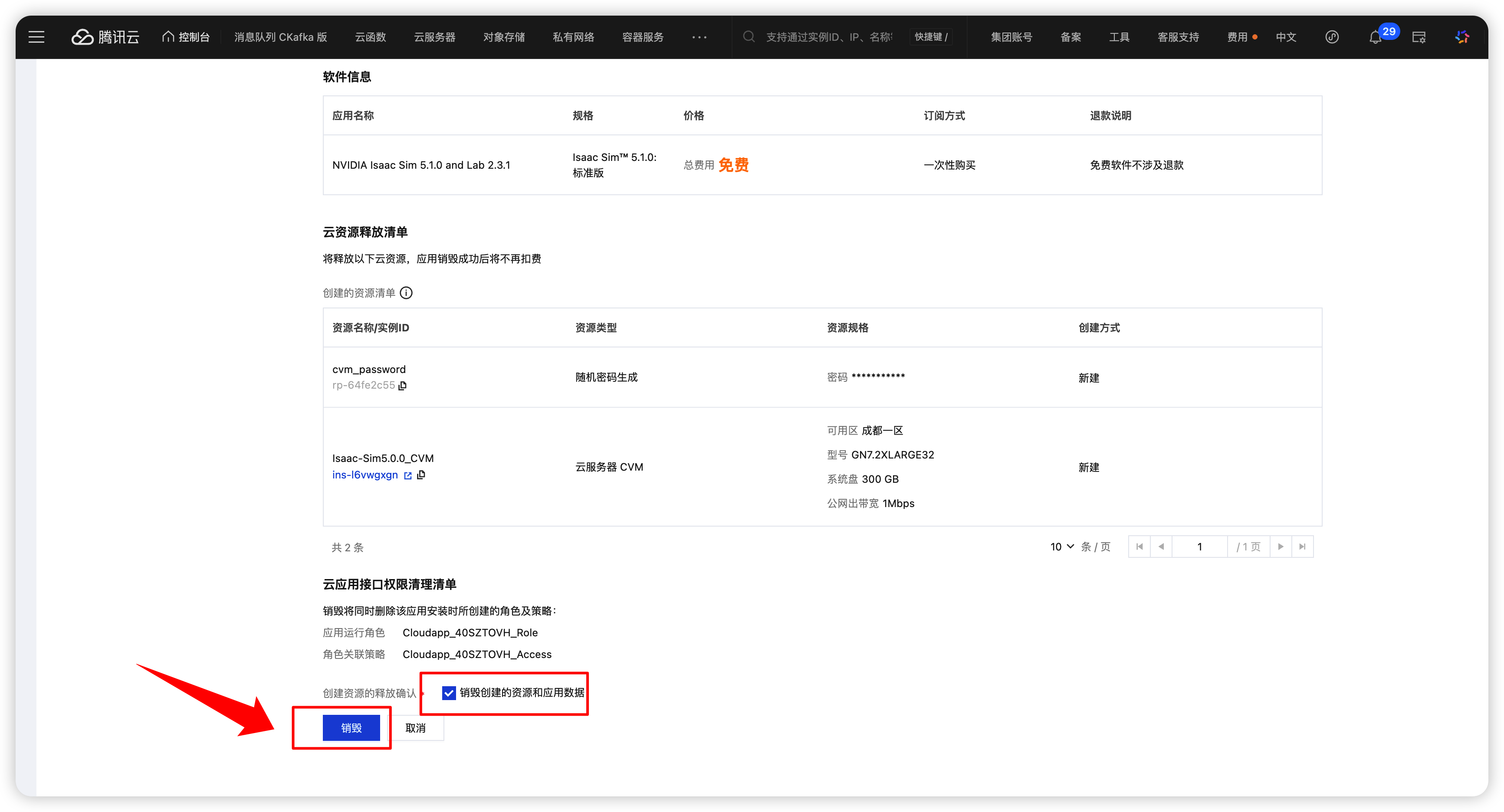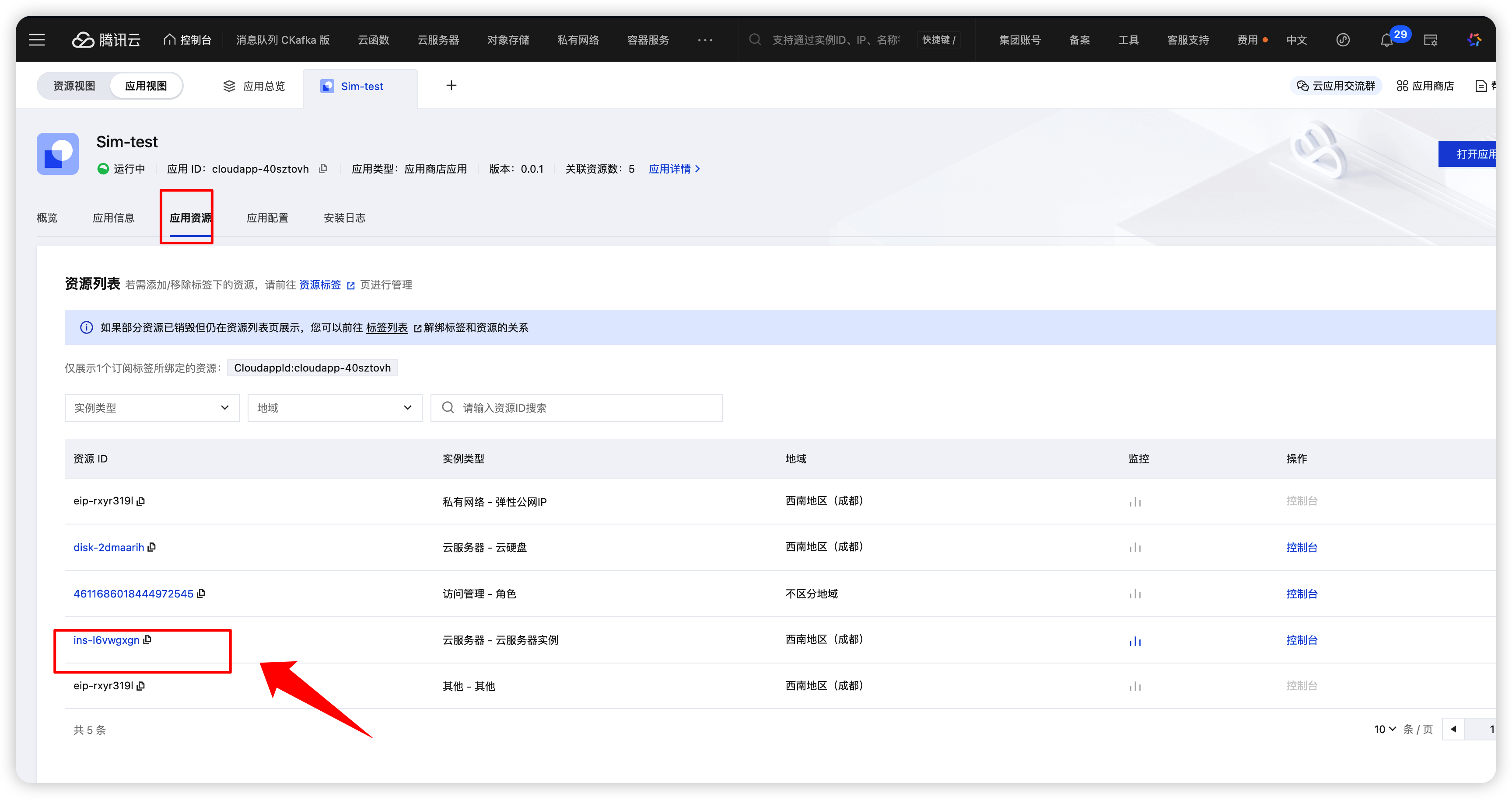 点击应用资源中的CVM资源。