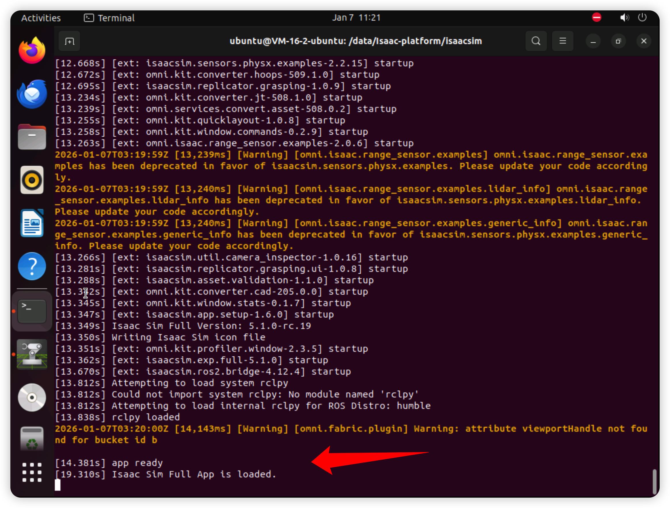 并提示:Isaac Sim Full App is loaded.