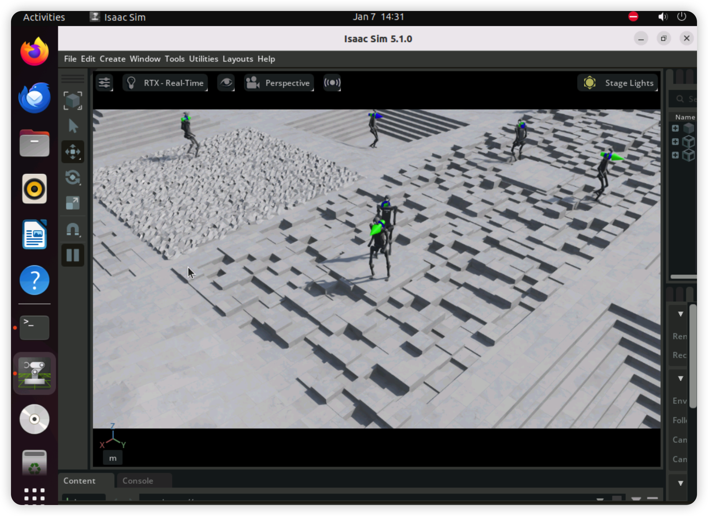 ./isaaclab.sh -p scripts/demos/h1_locomotion.py执行如下。