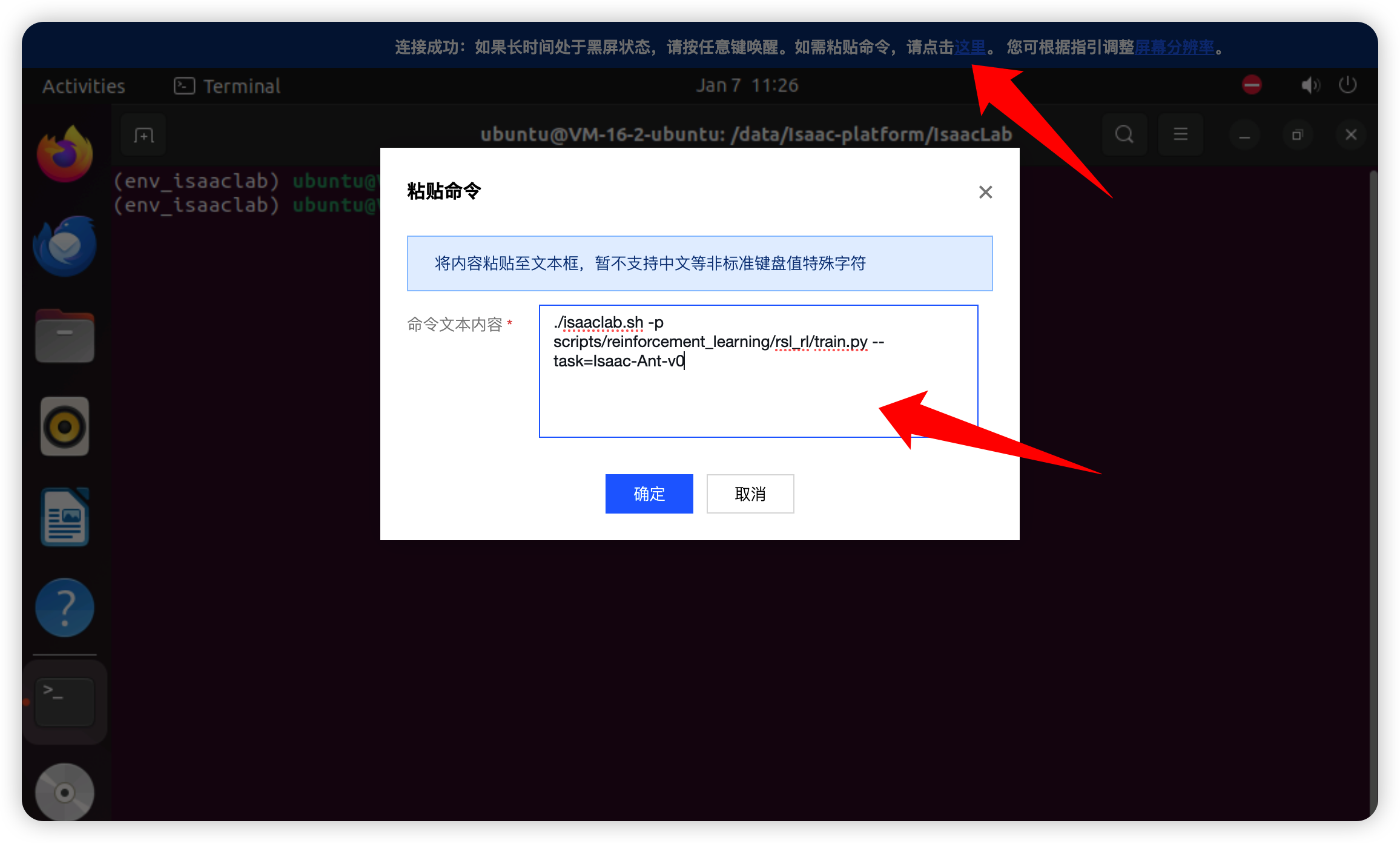 ./isaaclab.sh -p scripts/reinforcement_learning/rsl_rl/train.py --task=Isaac-Velocity-Rough-Anymal-C-v0 通过复制功能复制命令文本。