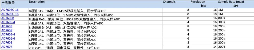 AD76069,8,06-4,06-6,06,07系列:降低采样率至 200kSPS,换取更高的 SNR 和分辨率(18位可达 101dB),主要面向测试测量;