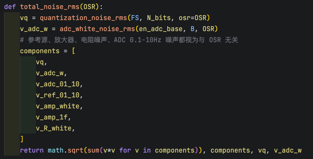 这个就是我们在 Python 里封装的 total_noise_rms(OSR) 函数。