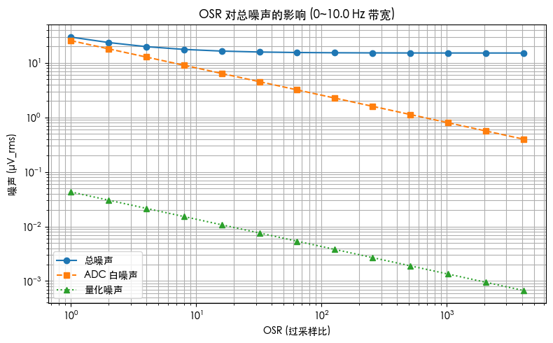 我们用“OSR=256 时白噪声 ≈ 1.6 µV_rms”反推出: