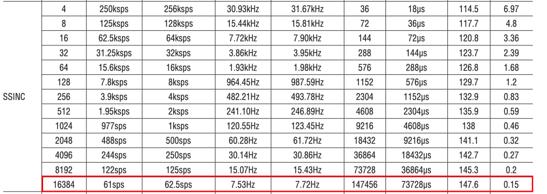 选 SINC4, DF=16384,VREF=2.5 V:ADC 噪声 ≈ 0.095 µV RMS(可以粗略当 0.1 µV)