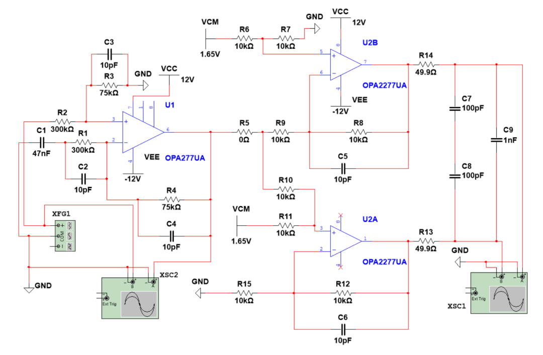 用 Multisim 14.1 做了信号调理部分的仿真。