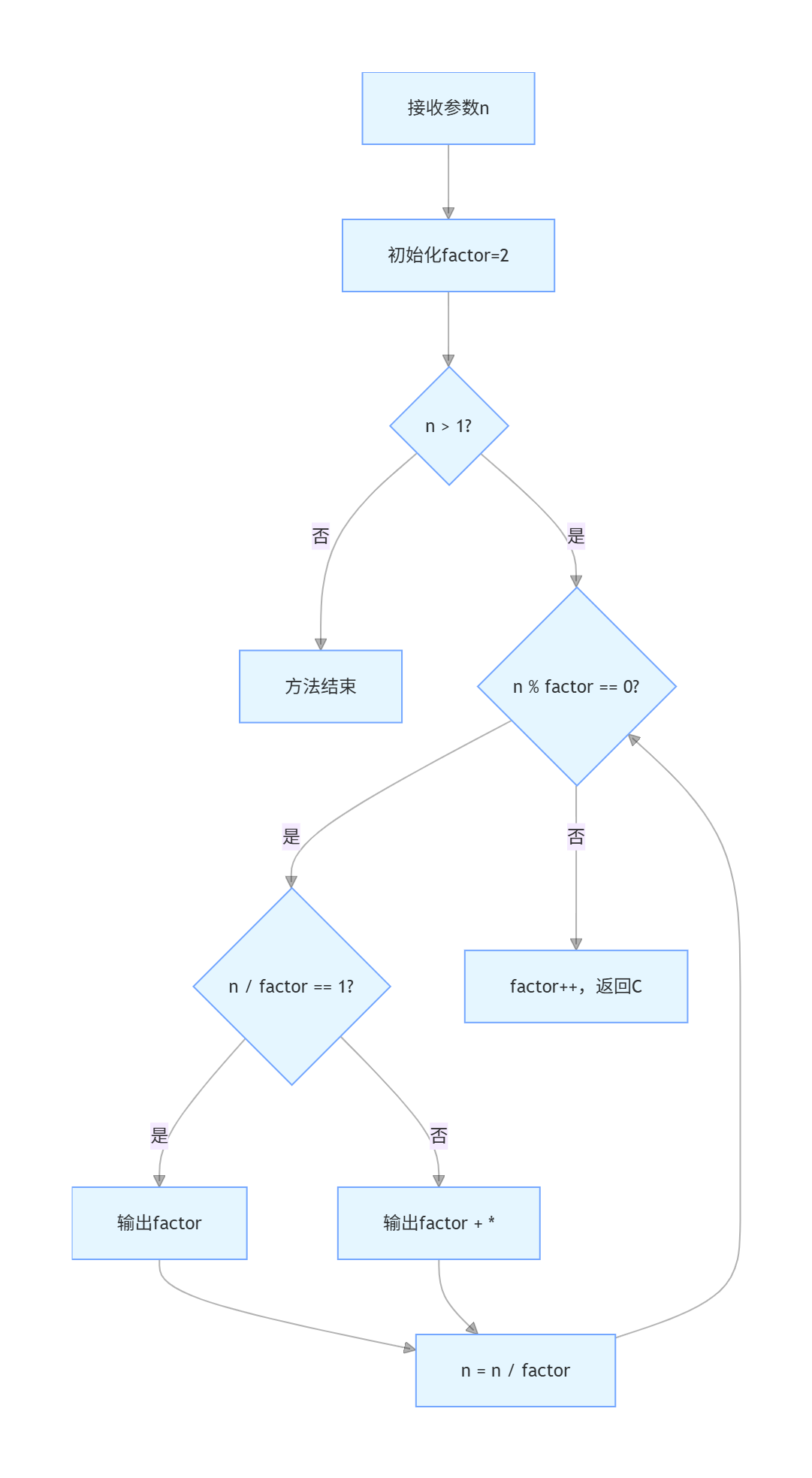 System.out.print(" * "); // 如果n还有其他因数,打印乘号