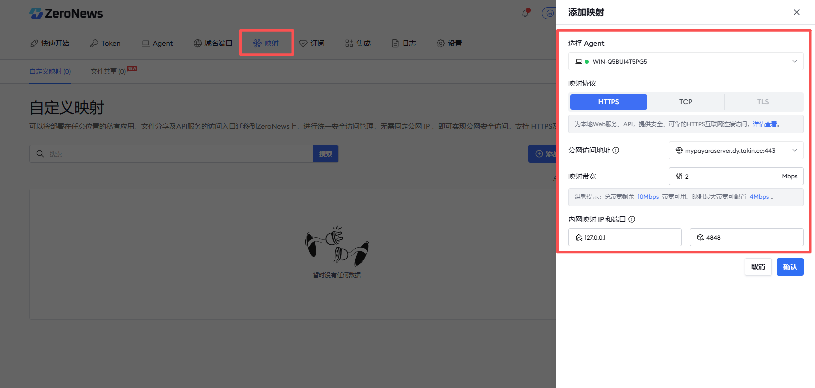 4、 按照上述步骤创建完成之后,我们就可以得到一条可公网访问的映射域名