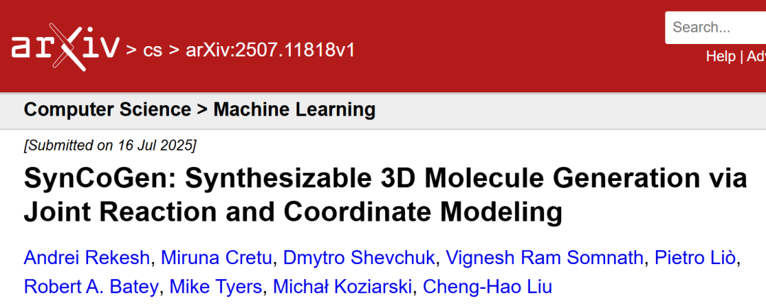 在计算机辅助药物设计与分子工程领域,如何平衡分子生成的结构精准性与合成可及性一直是核心难题。近日,由多伦多大学、剑桥大学等机构联合发表的研究论文《SynCoGen: Synthesizable 3D Molecule Generation via Joint Reaction and Coordinate Modeling》提出了一种突破性框架,首次实现了分子构建块反应网络与3D原子坐标的联合生成,为解决这一难题提供了全新范式。