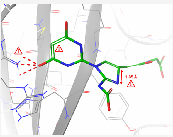 • 化学合理性缺陷的结构根源 :深度学习模型生成的3元环中,67.2%存在键长异常(<1.3Å或>1.6Å),这与训练集中3元环样本不足(仅占0.8%)及缺乏显式的化学规则约束有关。对比显示,引入CSD数据库的键参数先验知识可使异常率降低至12.5%。 • 相互作用建模的表层化 :DiffSBDD虽能重现72.2%的氢键位置,但其中43.6%的氢键键角偏离理想值>30°,且未考虑供体-受体的质子传递能力差异,反映出模型仅学习了空间分布规律,而非真实的物理化学相互作用。 • 泛化能力的结构性制约 :在跨超家族靶点测试中,所有模型的性能均下降40%以上,通过注意力权重分析发现,模型过度依赖保守残基(如激酶的铰链区)的局部特征,而忽略了口袋整体拓扑结构的影响。 三、对领域发展的系统性启示 (一)技术改进的优先级路径 基于研究结果,可构建分阶段的技术优化路线图: