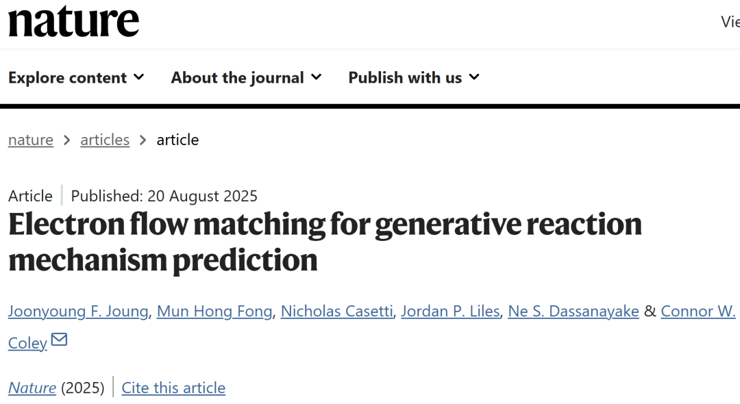 Joung, J.F., Fong, M.H., Casetti, N. et al. Electron flow matching for generative reaction mechanism prediction. Nature (2025).