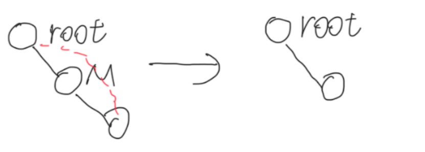B.M为右节点:M根节点连接M右节点,删M