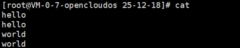 cat直接回车:命令行阻塞,从键盘直接读取内容到屏幕显示(Ctrl+C结束)