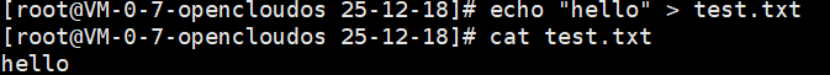 echo "hello" >> test.txt:追加重定向,不会清空原内容