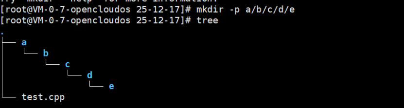 mkdir -p:创建一串路径(包括中间不存在的目录)