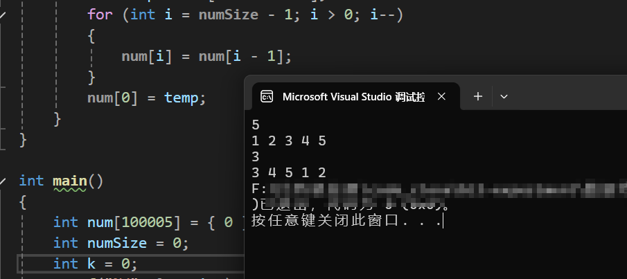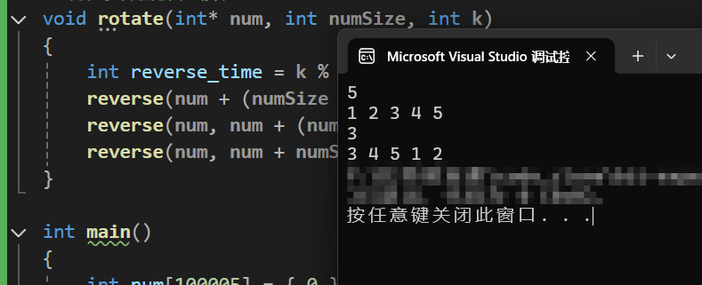 reverse(num + (numSize - reverse_time), num + (numSize - 1)); //现将数组最后k个数字进行反转
