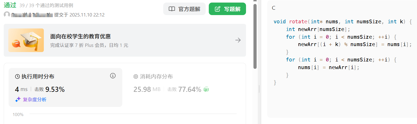 今天在力扣平台上看到一道有意思的题目:189. 轮转数组 - 力扣(LeetCode)