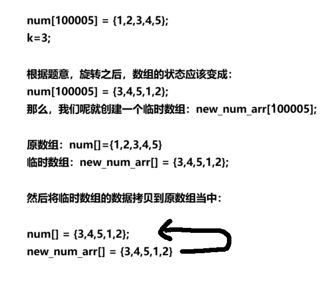 我们可以用一个临时数组来存放原数组数据移动之后的状态,再将临时数组中的数据放回原数组,大家可以参考下图来辅助理解: