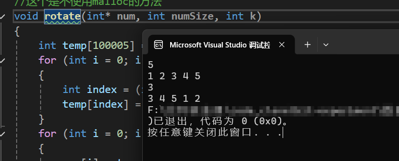当然,对于创建临时数组这个方法,还有第二种写法,那就是使用malloc函数创建数组,代码如下: